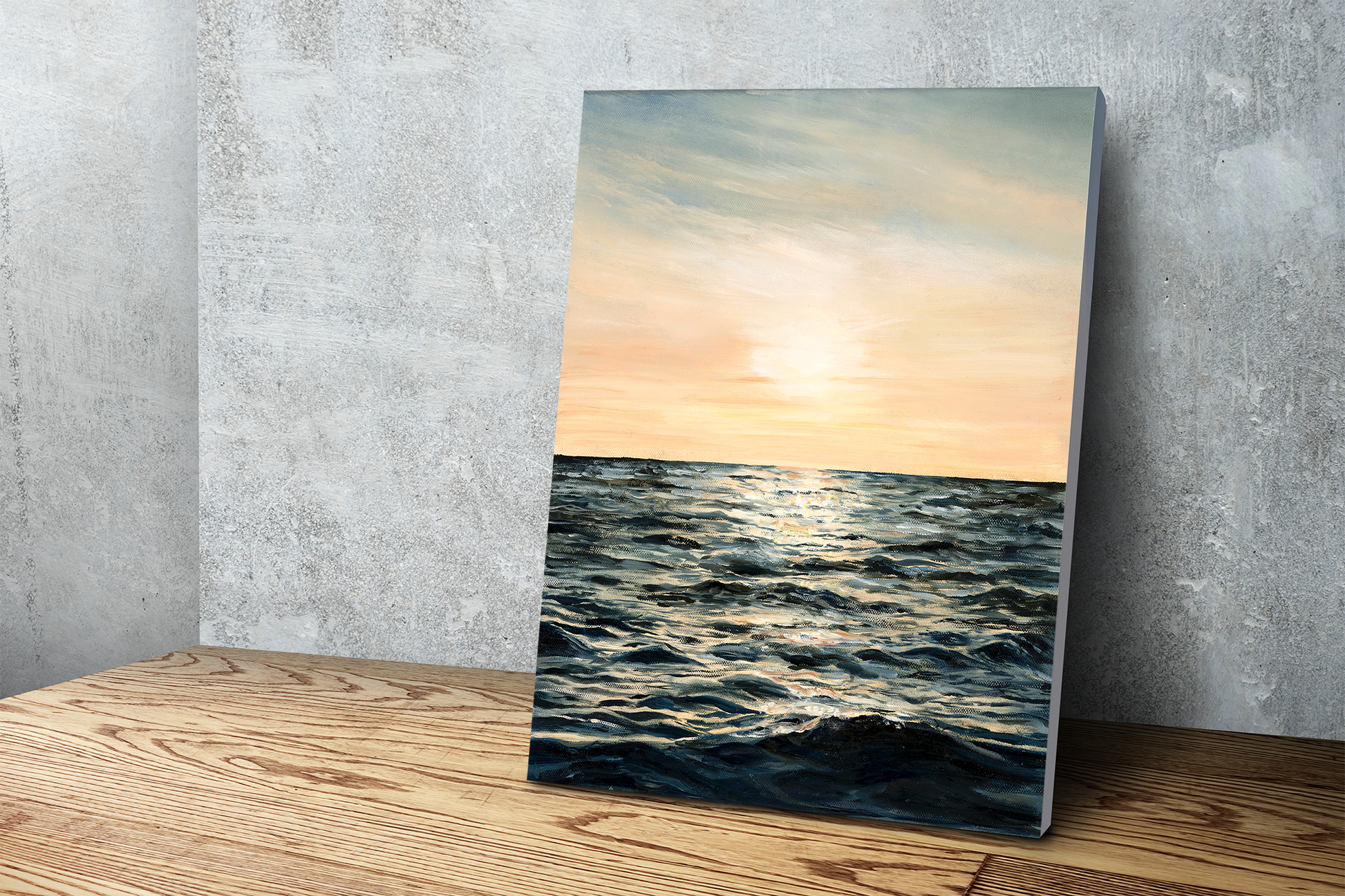Capture the magic of the golden hour with this fine art print, reproduced from an original oil painting. Bathed in warm, glowing light, the scene evokes serenity and timeless beauty — perfect for bringing a sense of calm and atmosphere into your home.